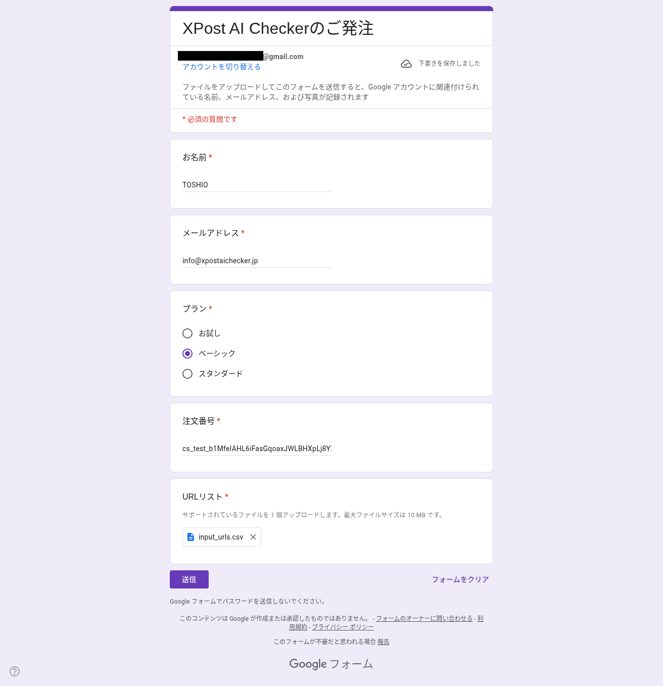 「発注フォームへ進む」をクリックして、URLリストを提出してください。